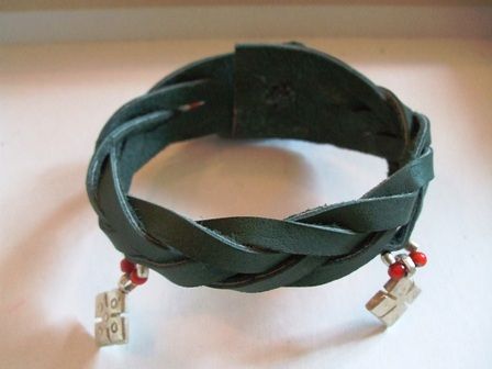 細バングルのラスタビーズを外して、ハンドメイドのエチオピアンクロスと赤いビーズを自分でつけたものです。裏が見えませんが、ガラスの再生ビーズがついています。素敵ですね。