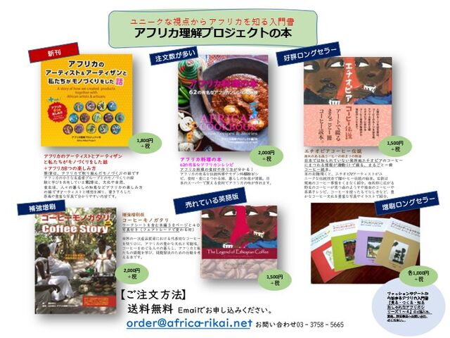 書籍「新刊」「アフリカ料理の本」「エチオピアコーヒー伝説」などの書籍や生産者支援のストーリーのあるオリジナル商品が販売できました。