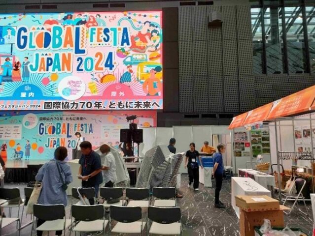 NGOブースはメインステージ横。来場者は全体としては増加し活気がありましたが、ブース配置には改善が必要です。通路が狭く、ステージの音響でスタッフの活動の説明がかき消され、かなり残念です。