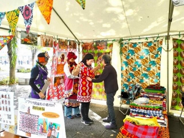 11月9日(土)の文化体験は、「東アフリカの民族布を着てみよう」というワークショップを行いました。1枚の布が、衣服にも負ぶい布にも変身!アフリカの知恵を体験します