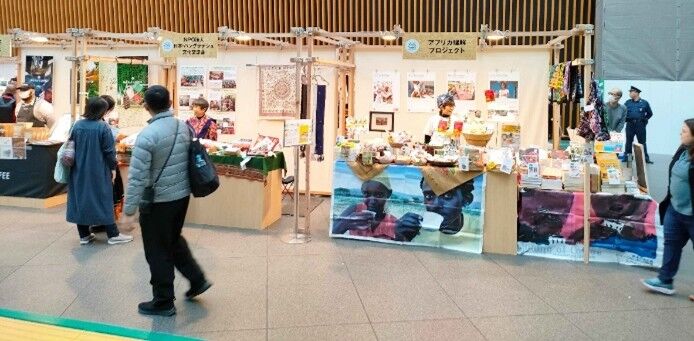 アフリカ理解プロジェクトは、協力隊OB・OG(OV)による27団体の一つとして、式典会場外のロビーギャラリーに物販ブースを設置しました。